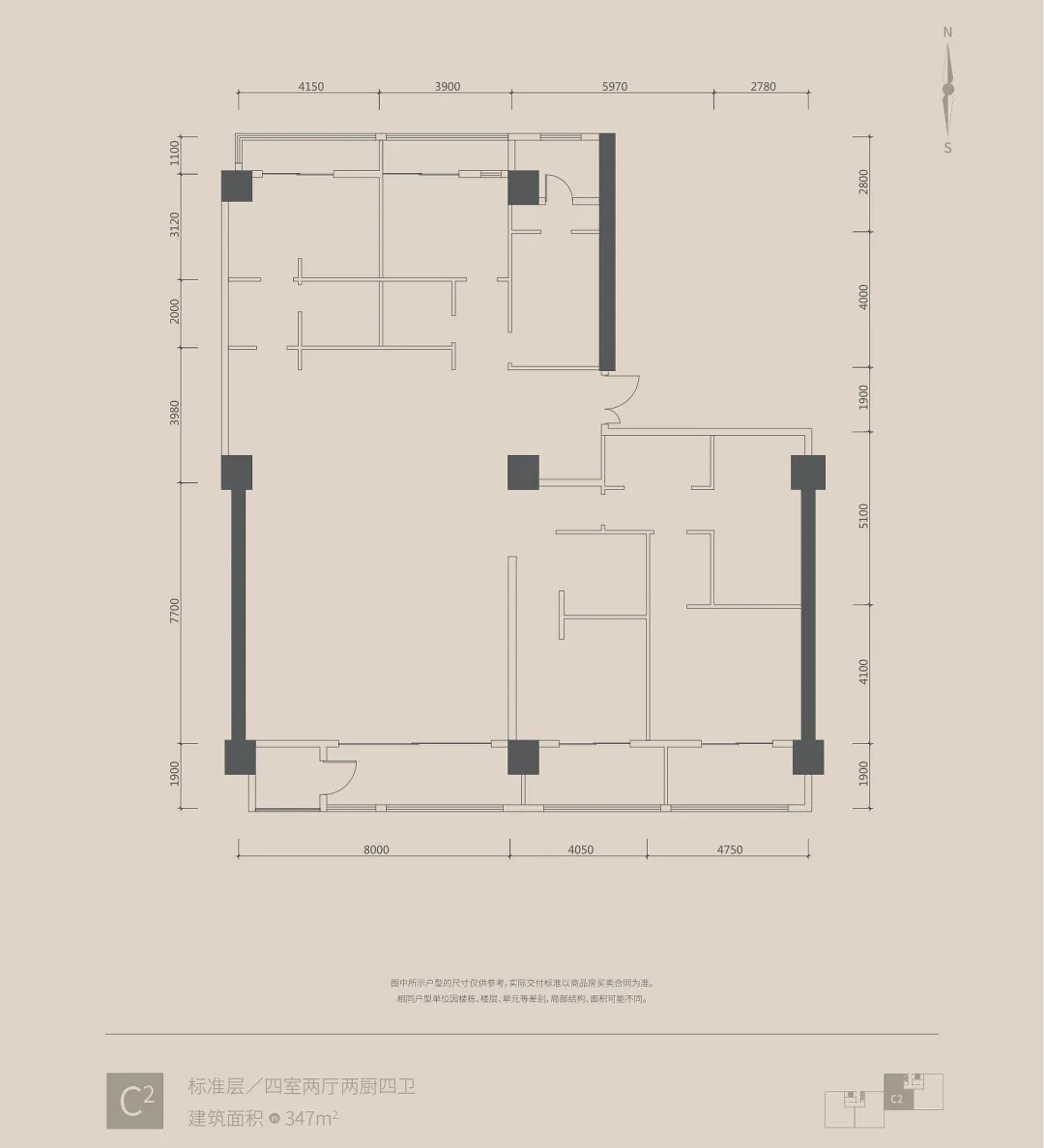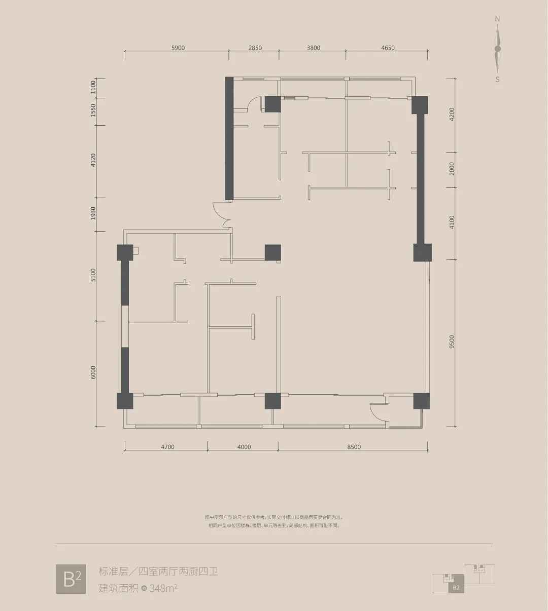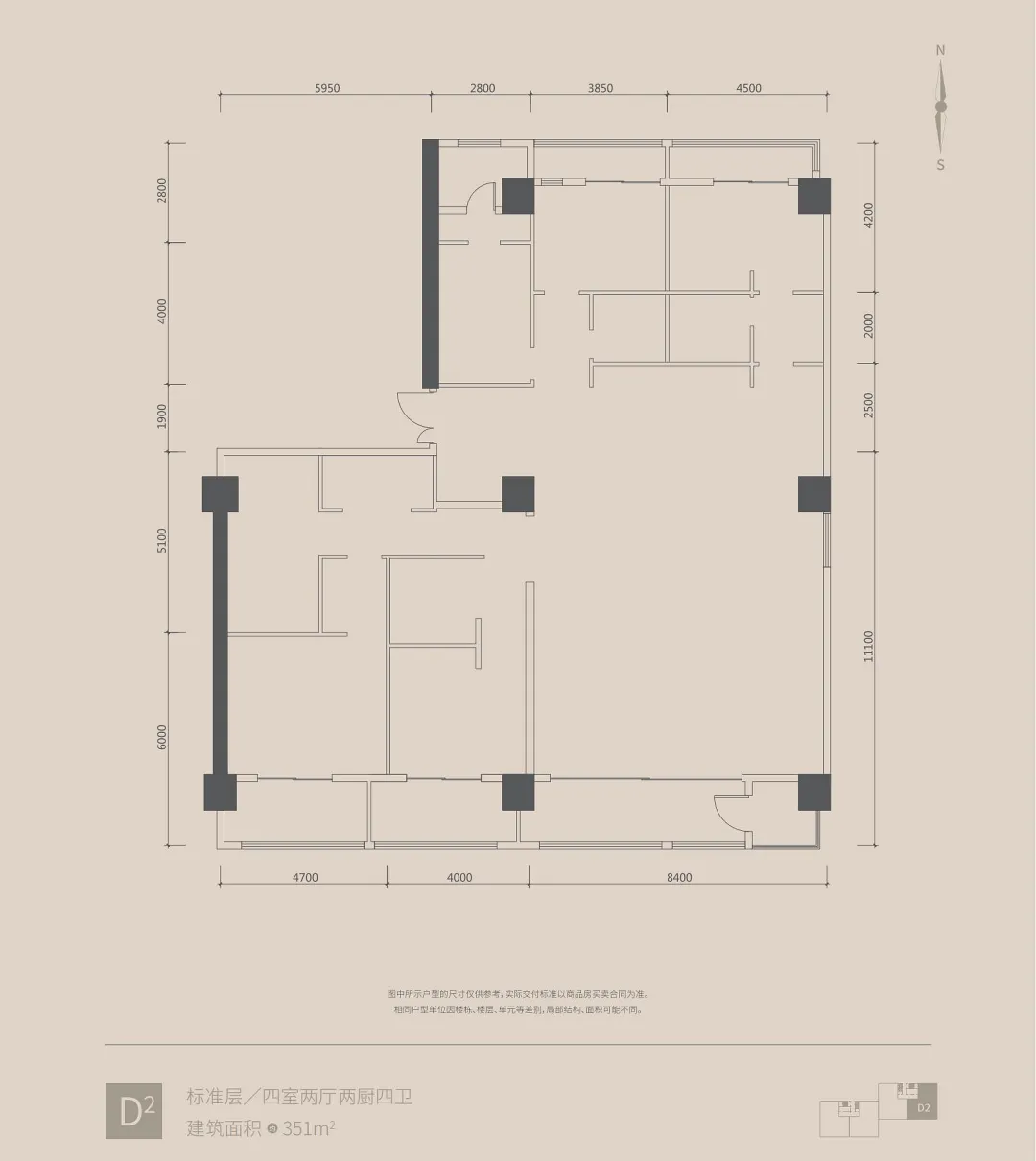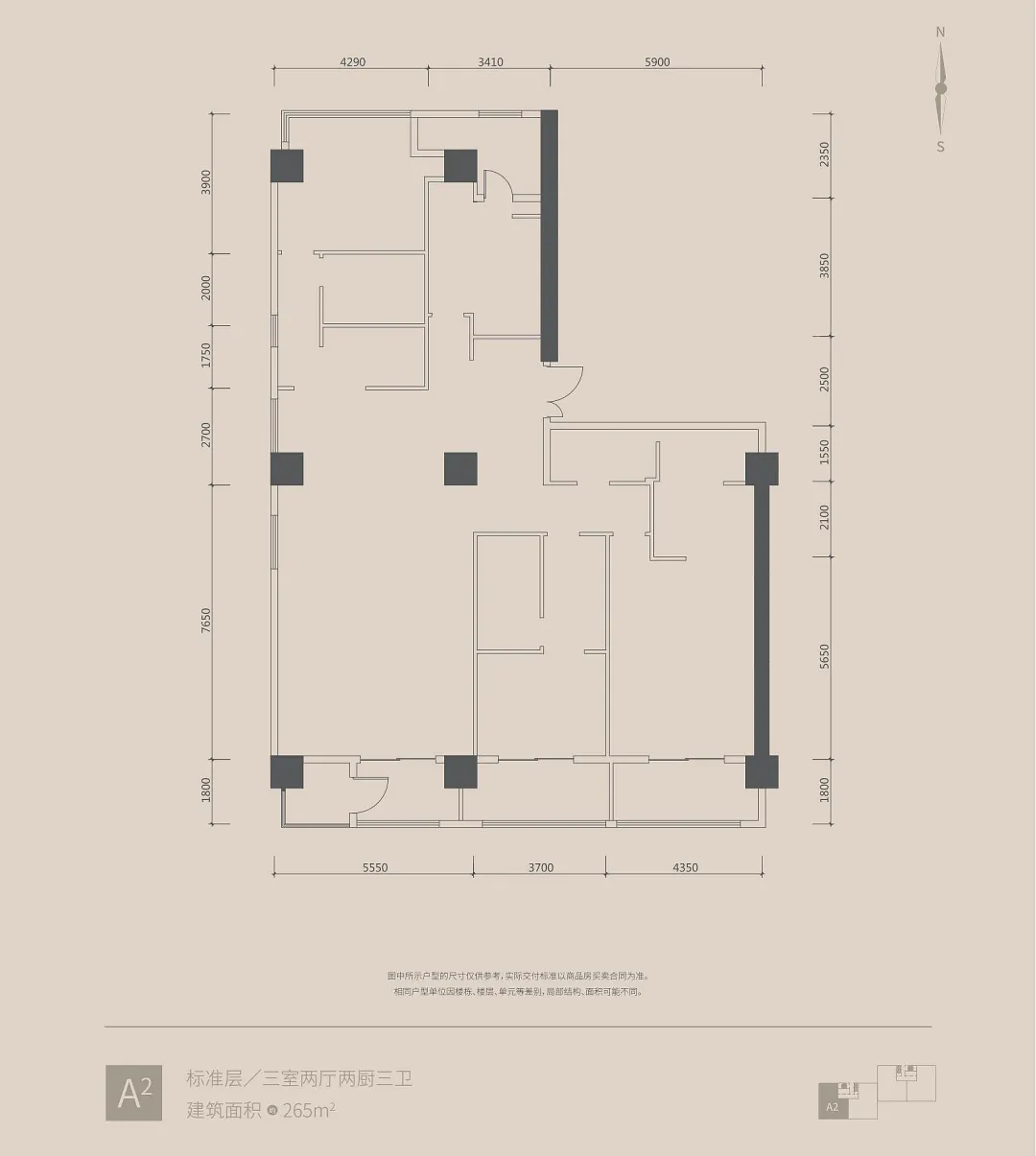 2#(4-18层):2梯2户,总计60套,主力户型2个,主力面积265-350㎡: