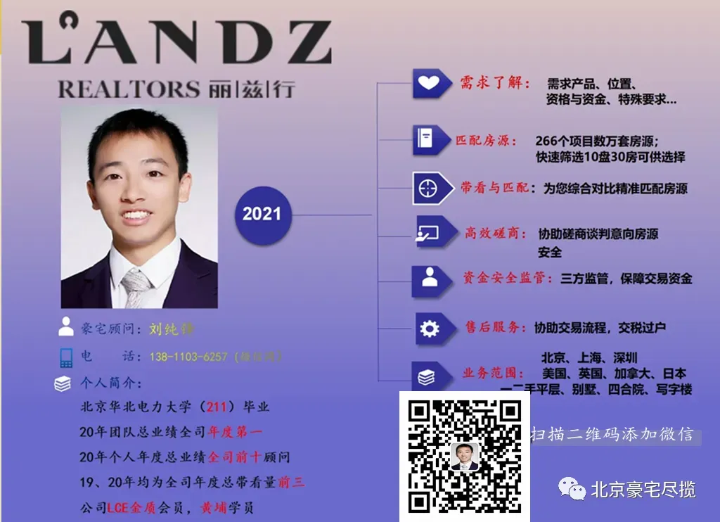 如对项目感兴趣,欢迎随时联系:全北京豪宅专家刘纯锋13811036257(同微信)。