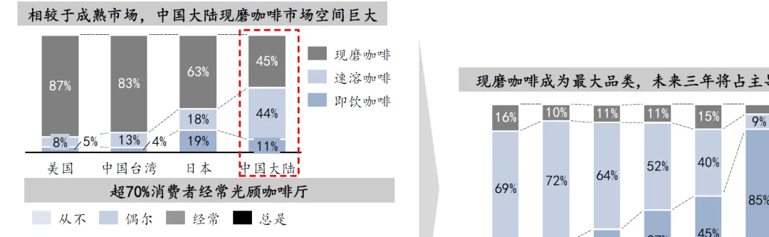 市场趋势一:中国现磨咖啡市场快速发展,预计3年内将成为主流咖啡消费(消耗量)