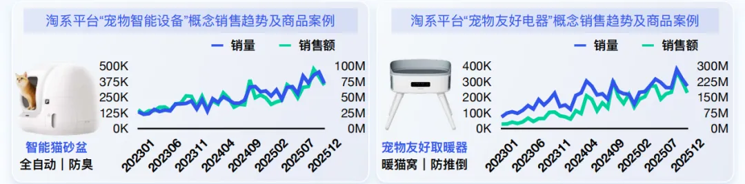 智能猫砂盆、宠物摄像头、智能穿戴设备等宠物智能产品销量显著增长,科技助力养宠更省心。同时,植物猫砂、彩色猫砂等环保型用品也受到欢迎,兼顾宠物健康与可持续生活理念。