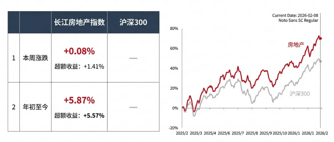 本周(截至2026年2月8日)房地产板块表现相对稳健。