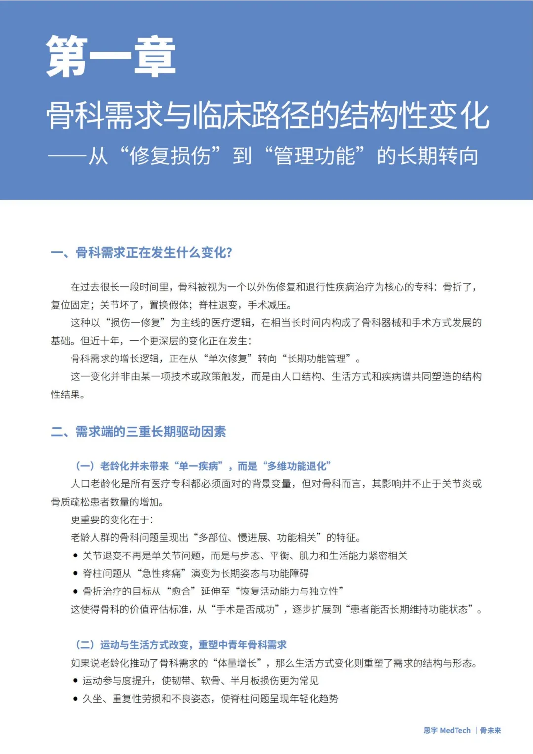 1.骨科需求从“修复损伤”转向“长期功能管理”,核心是受哪些因素推动?