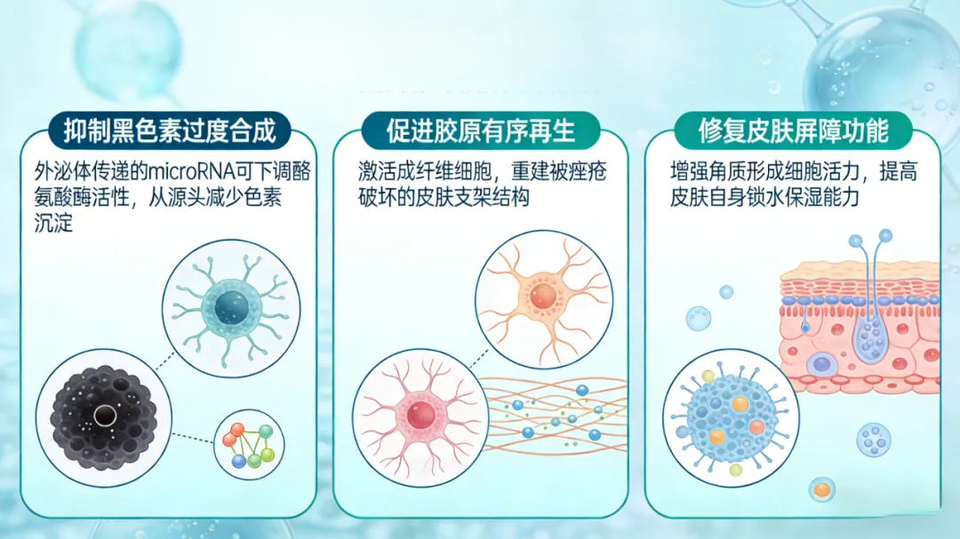 1.抑制黑色素过度合成:外泌体传递的microRNA可下调酪氨酸酶活性,从源头减少色素沉淀