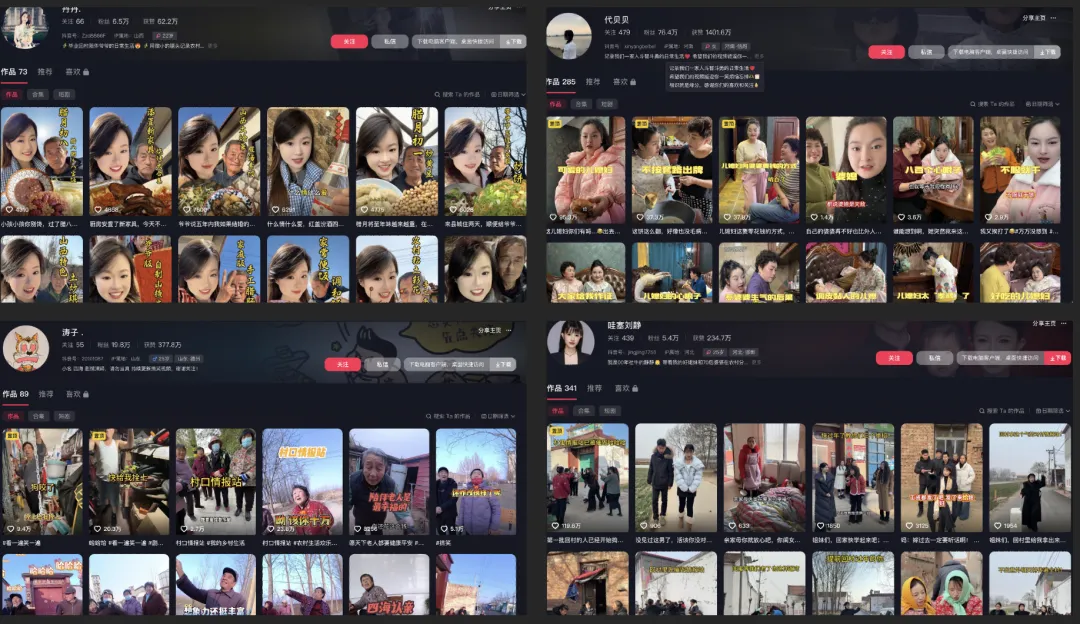 山河四省作为农业大省,创作者们往往更喜欢深耕三农赛道,日常记录则高度聚焦亲情伦理关系(尤其是婆媳、妯娌这种自带高爆吸睛属性的家庭关系),这一家庭情感内核,内容兼具乡土性、真实性和互动性,成为四省短视频乡土赛道的核心代表,创作特点十分鲜明——其本质是山河四省共同的农业属性、民俗文化和家庭观念,是草根创作者的主流选择,简单来说就是低门槛、易共鸣、好变现。