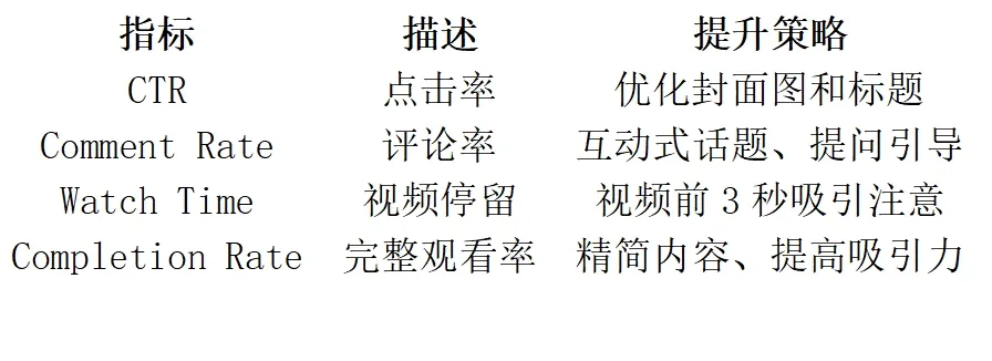 推荐逻辑:好友/兴趣 → 互动信号 → 内容新鲜度 → 视频/原创内容优先