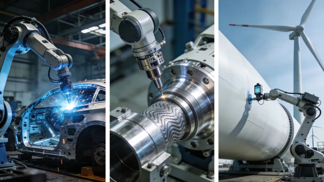 3. 应用前景 :应用场景不断纵深拓展,除了汽车、电子等传统优势领域,正逐步切入航空航天、船舶等高端制造领域,以及风电叶片检测等高危场景。此外“多品种、小批量”的生产趋势,推动柔性化机器人需求激增,同时政策也持续支持其在重点行业落地,后续会从单一作业向集成化解决方案方向发展,进一步渗透到更多细分工业场景。