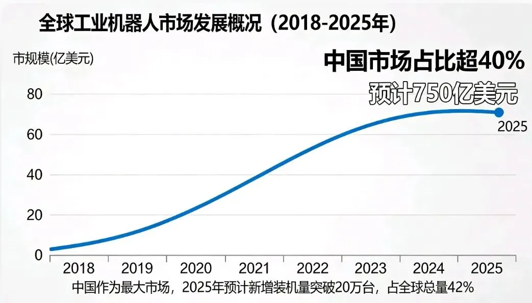 1. 市场空间 :国内市场根基稳固,2024年中国工业机器人销量达30.2万台,且连续12年是全球最大市场,自主品牌占比首破50%达58.5%。海外增量显著,2025年前5个月我国工业机器人出口额同比增长55.4%,叠加东南亚、欧洲等地区制造业自动化需求上涨,出海成为重要增长极。同时锂电、光伏、风电等新兴领域的自动化需求,也持续拓宽市场边界。