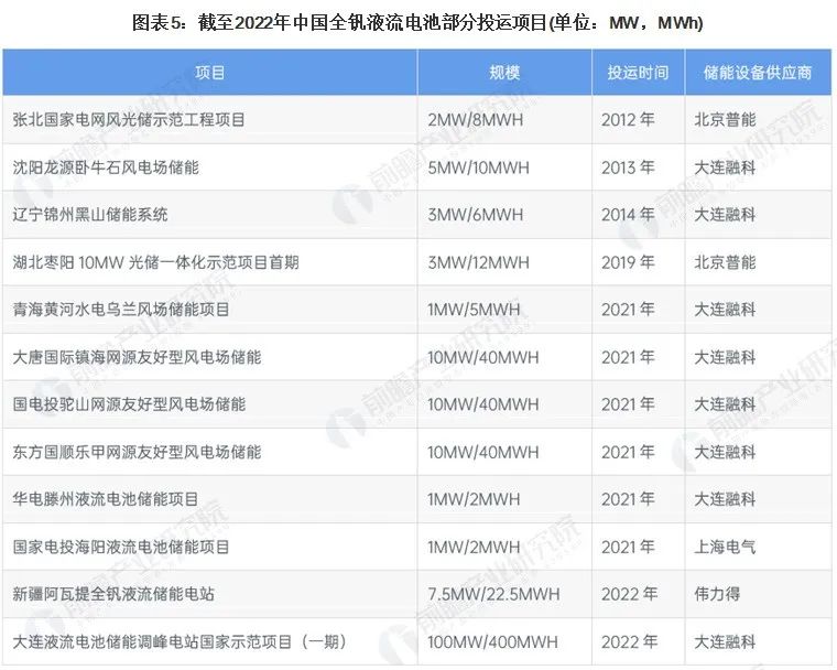 表:全钒液流电池储能产业布局分布