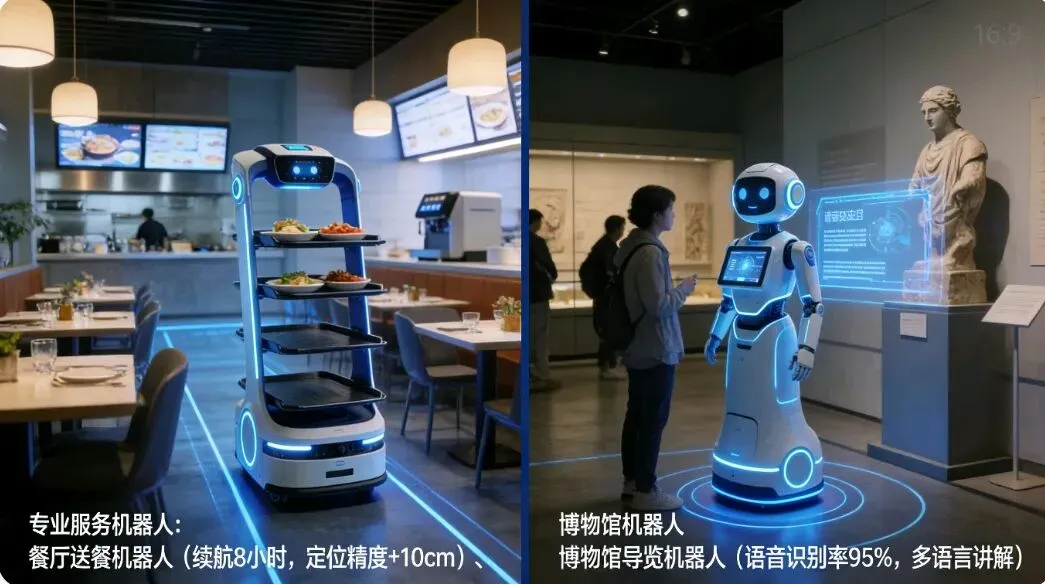 服务机器人作为智能化服务的核心载体,以“场景适配+技术赋能”为核心,深度渗透家庭、商用、医疗、工业等多元领域,构建全场景服务生态。