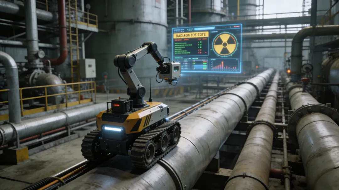 高危环境作业领域,核工业机器人搭载抗辐射材料与远程操控系统,可深入反应堆厂房执行管道检测、燃料更换等任务,辐射耐受剂量达10000Gy,作业精度控制在±0.1mm;化工场景中,防爆巡检机器人配备可燃气体传感器(响应时间<1秒),实时监测储罐区泄漏情况,替代人工实现24小时不间断巡逻。