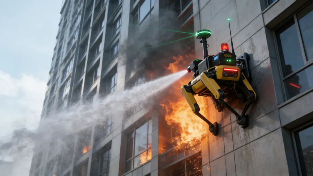应急救援领域呈现多机型协同态势:地震废墟中,仿生四足机器人借助地形自适应算法跨越1.5米障碍,机械臂负载50kg完成伤员转运;高层建筑消防场景,爬壁机器人通过真空吸附技术攀爬90°墙面,搭载高压水枪实现精准灭火,续航时间达2小时。