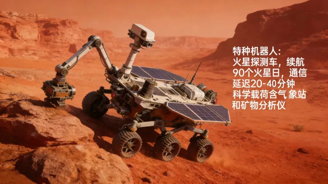 特种机器人:适配极端或特殊环境,例如军事排爆机器人、火星探测车、深海探测器,还有农业自动采摘机器人,能完成人类难以直接开展的任务。