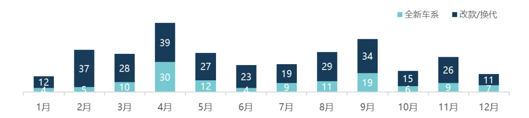 4月成为新车发布最为集中的月份,可能受四月上海车展的流量带动以及季度性消费周期驱动,多款新车选择在车展期间集中亮相,凸显重大行业节点的强大牵引力。