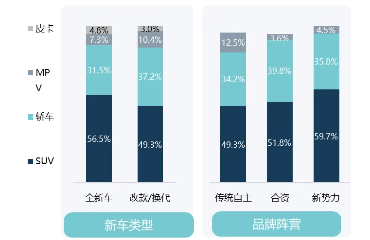 分车型 新车结构分布