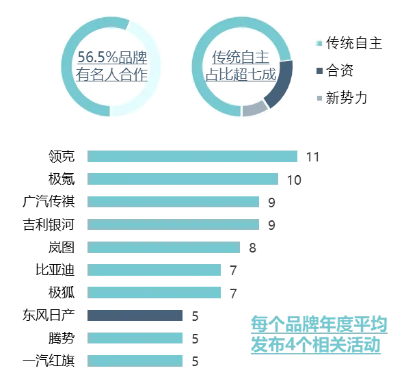 营销活动概况:营销资源向新车倾斜明显,传统自主品牌是名人合作主力军