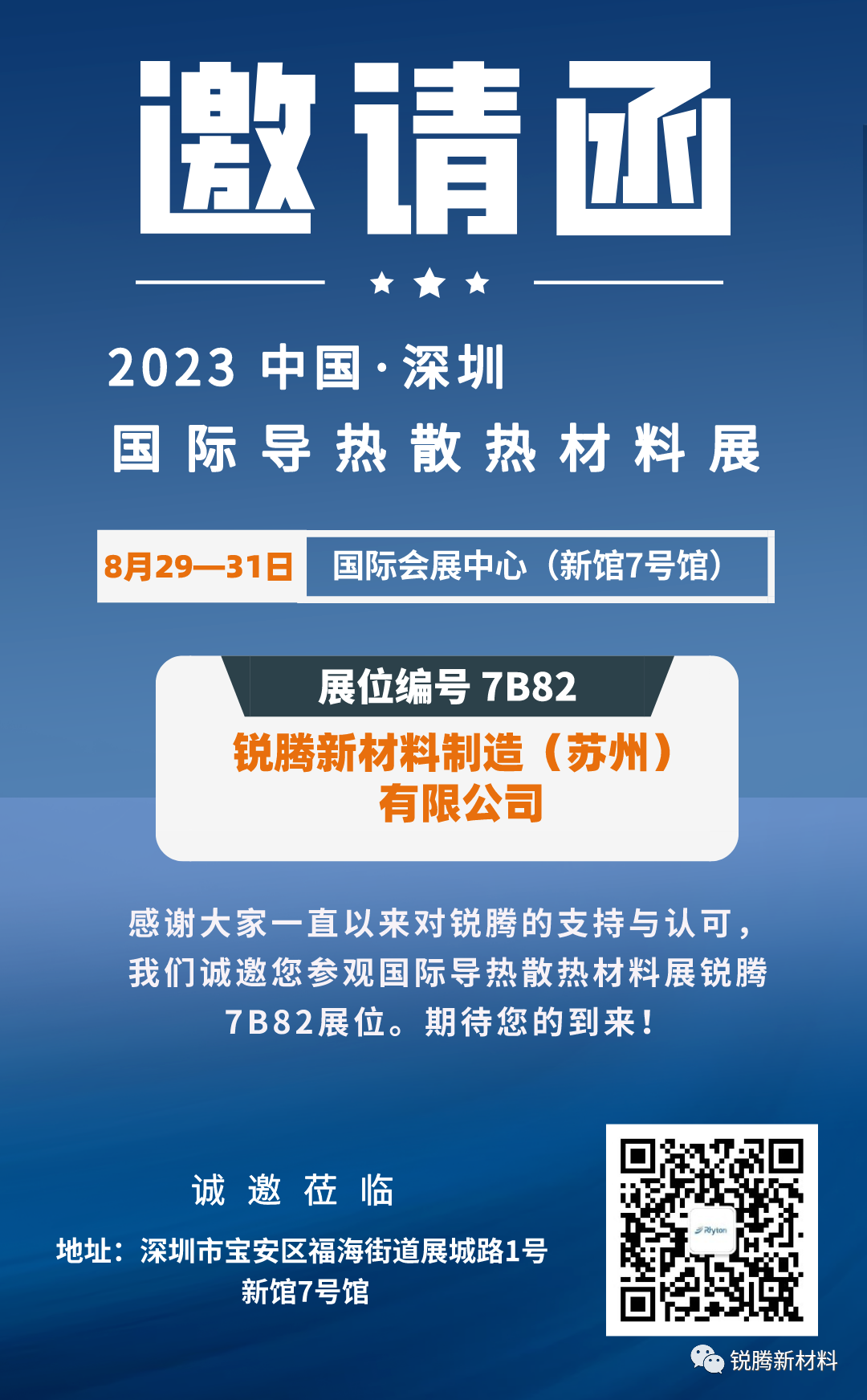 2023年第十届深圳国际导热散热材料展将于8月29-31日在深圳国际会展中心(新馆7号馆)召开。诚邀您莅临 7B82锐腾展位,进行参观指导及业务交流!