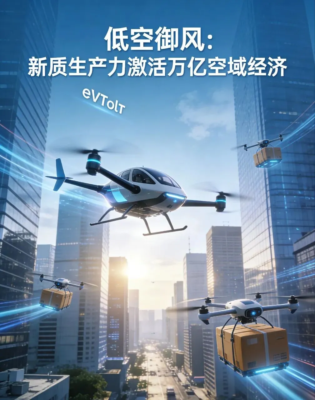 低空经济在2026年迈入商用元年,成为新质生产力的典型代表。随着全国空域管理政策的逐步放开,这一万亿级蓝海市场加速从试点走向普及。在产业端,eVTOL(电动垂直起降飞行器)载人飞行开始商业化运营,无人机物流配送在偏远地区与城市末端实现常态化;在消费端,低空文旅、空中游览等新业态蓬勃兴起。与此同时,飞行器制造、低空空管系统、通信导航等配套产业迎来黄金发展期,商业航天的低轨卫星组网也为低空经济提供了强大的通信支持,共同构建起一个立体的空中经济生态。