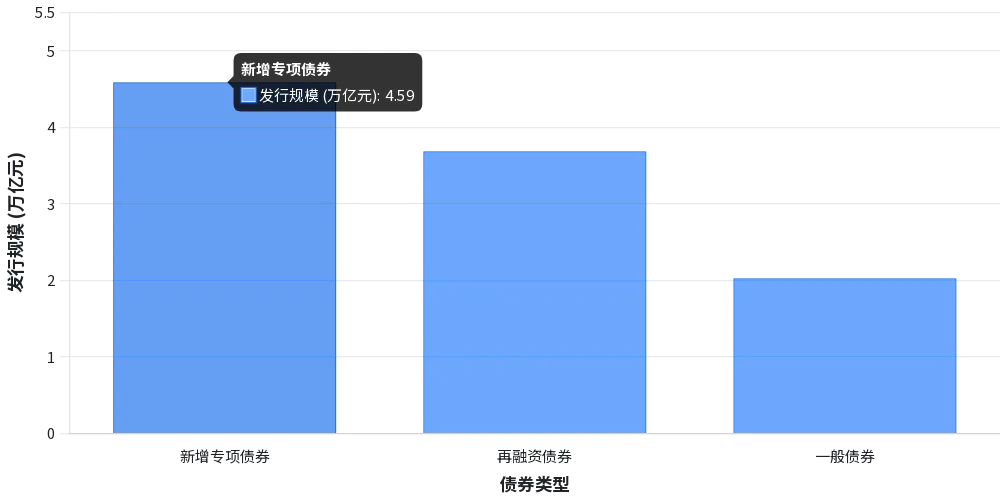 发行规模创历史新高。 2025年,全国共发行地方政府债券约10.31万亿元,同比增长5.2%,年度发行规模首次突破10万亿元。其中,新增专项债券发行规模约4.59万亿元,同比增长14.5%。专项债占地方政府债券发行总额的74.7%,是地方政府融资的绝对主力。截至2025年末,地方政府债务余额中专项债务达373111亿元,占全部地方政府债务的68%。