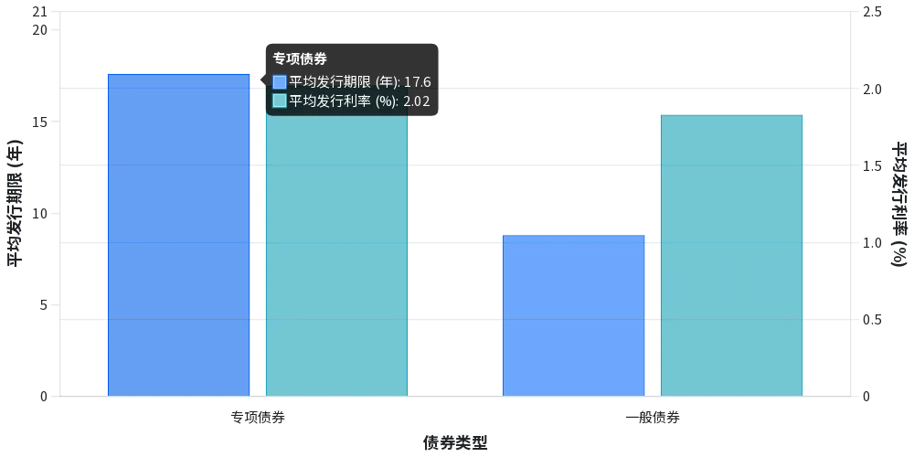 期限结构长期化,发行利率低位运行。 专项债发行期限明显延长,以匹配长期项目需求。2025年全年专项债平均发行期限为17.6年,远高于一般债券的8.8年。部分长期限品种规模大幅提升,30年期超长期专项债发行规模突破5000亿元。与此同时,发行利率持续走低。2025年全年专项债平均发行利率仅2.02%,较上年继续下行。例如,2025年一季度专项债平均发行利率已降至1.97%。长期限叠加低利率,有效降低了地方政府融资成本和短期偿债压力。