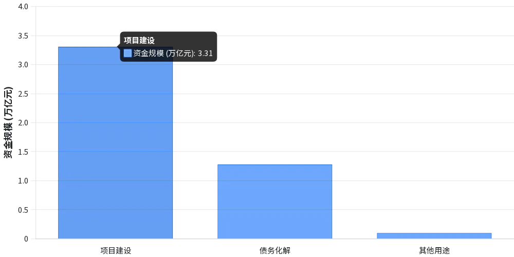 资金使用聚焦重点领域,支持结构优化升级。 从资金投向看,专项债主要投向了经济社会发展的关键领域和薄弱环节。一是基础设施领域。专项债资金继续向交通基础设施(铁路、收费公路、机场、城市轨道交通等)、市政基础设施(供水、供热、供气、地下管廊等)、产业园区基础设施等倾斜,为“两新一重”(新型基础设施、新型城镇化和交通水利等重大工程)建设提供资金保障。二是民生和社会事业领域。专项债重点支持保障性安居工程(棚户区改造、保障性租赁住房、城镇老旧小区改造等)、教育、医疗、养老、托育等社会事业项目,以及应急医疗救治设施、职业教育实训基地等。三是生态环保和绿色发展领域。专项债支持城镇污水垃圾处理、水环境综合治理、固废处理、流域生态治理等环保项目,推动绿色发展。四是新兴产业和区域协调发展战略领域。专项债积极支持战略性新兴产业基础设施、数字经济基础设施、新能源基地建设,以及京津冀协同发展、长江经济带发展、粤港澳大湾区建设、长三角一体化发展等国家重大战略项目。这种多元化的投向结构,有助于推动经济结构优化升级,增强发展后劲。