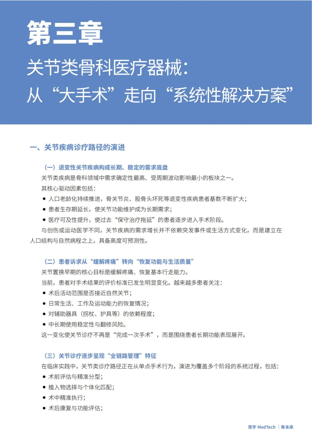 《全球骨科医疗器械白皮书》的推出,正是基于这样一种判断——在这个变化迅速的赛道上,我们需要一个跨越医学、工程、政策与资本的全景式视角。这不仅是一次记录,更是一次对路径的整理与判断:从疾病负担到技术演进,从政策集采到投融资热度,从全球巨头到中国新锐,力图勾勒出一幅骨科器械产业的“进化图谱”。