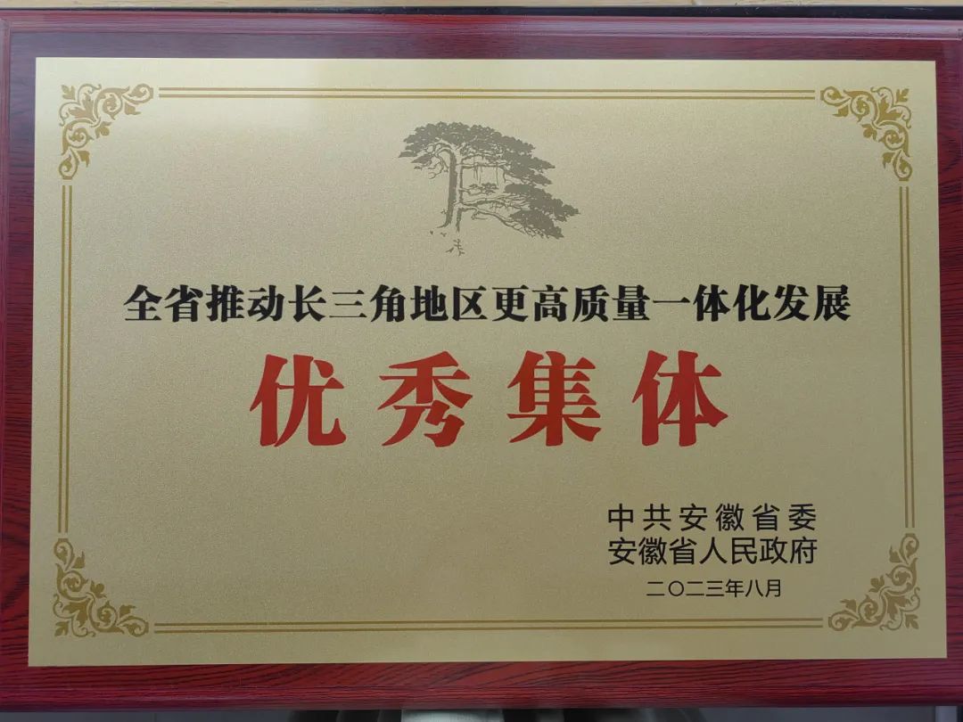 为树立典型,表扬优秀,根据中共安徽省委办公厅文件皖办发[2023]19号《中共安徽省委办公厅 安徽省人民政府办公厅关于表扬全省推动长三角地区更高质量一体化发展优秀集体和优秀个人的通报》,大会为全省推进长三角地区更高质量一体化发展的优秀集体、优秀个人颁发了奖牌和进行了通报表扬。
