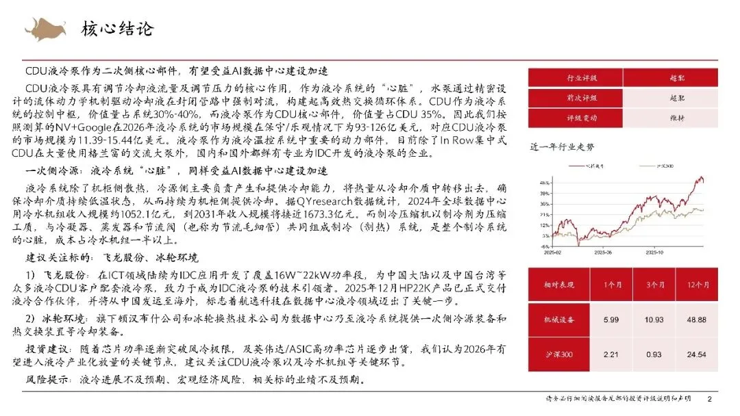 机械设备行业数据中心散热专题报告1:CDU液冷泵及冷源关键环节推荐-260201-西部证券-21页