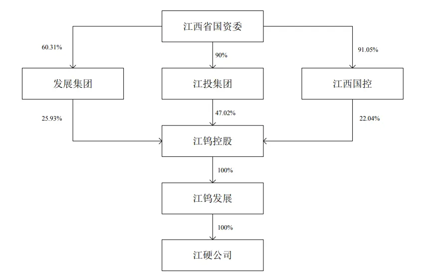 江钨发展持有江硬公司100%股权,系江硬公司的控股股东,江西省国资委系江硬公司实际控制人。