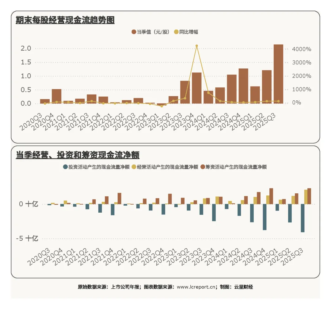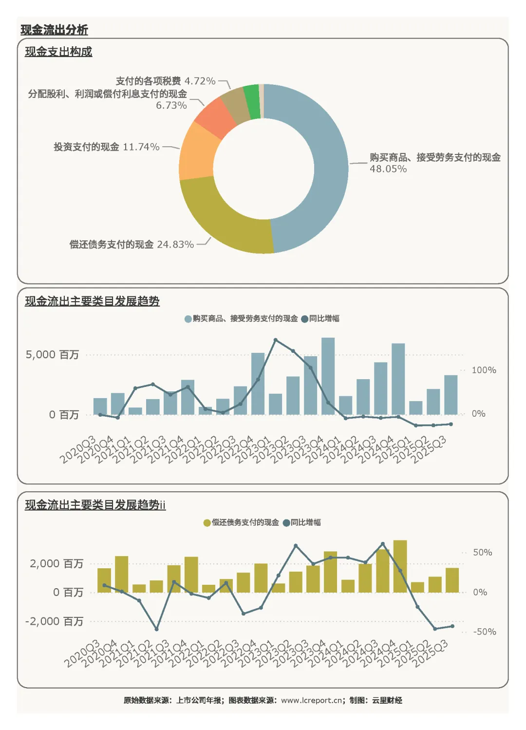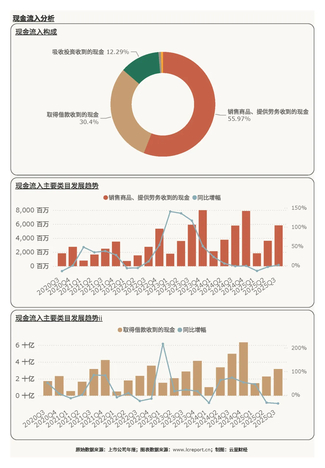 2)经营现金流实现爆发式增长,现金流入结构多元,核心经营现金流支撑稳固,现金流出优化明显,资金循环效率大幅提升。