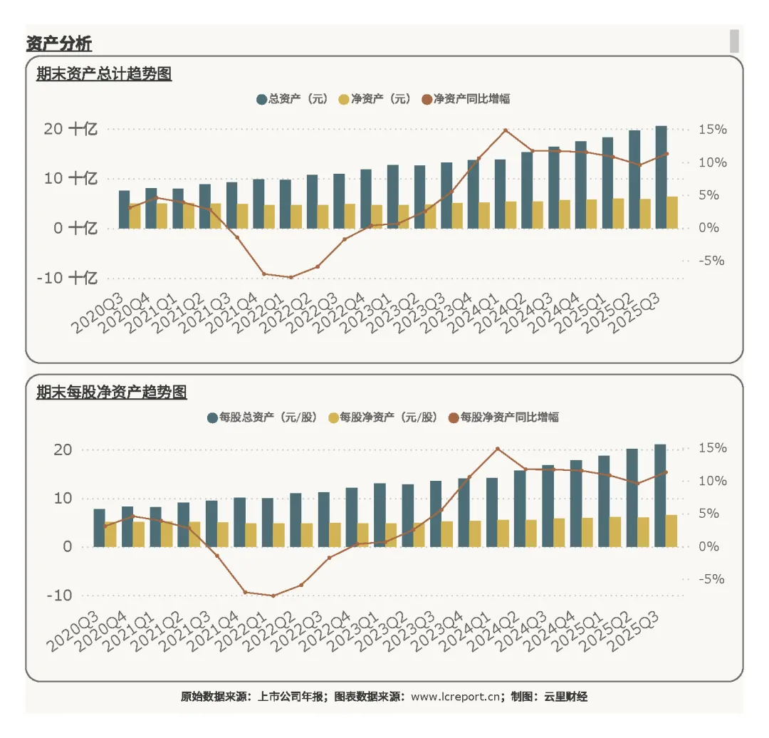 报告期末赣能股份的总资产为204.84亿元,净资产为63.09亿元,每股净资产为6.47元。周期内赣能股份资产规模稳步增长。