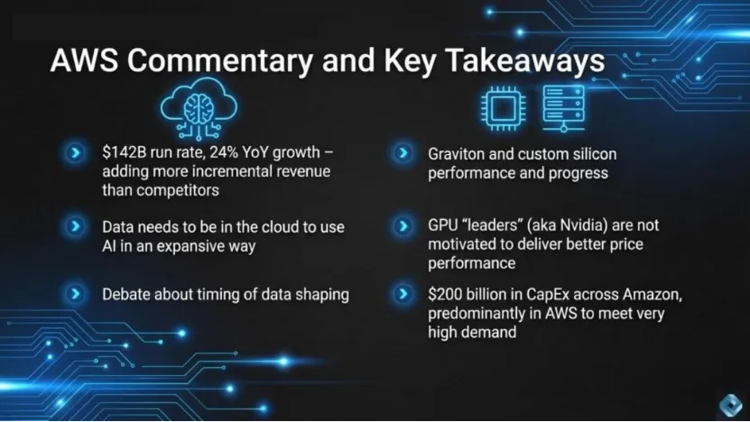 这一话题又回到资本开支上:亚马逊云科技的大规模投入迫使其做出艰难抉择,而芯片战略正是其掌控单位经济效益、降低对单一供应商依赖的尝试。投资者真正关心的是,这些资本开支能多快转化为可持续的盈利,以及定制化芯片战略能否长期提升企业利润率。
