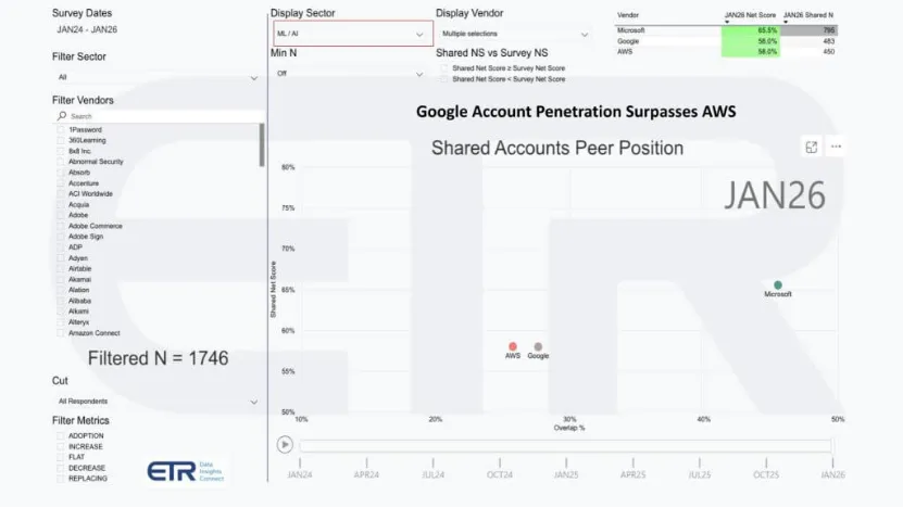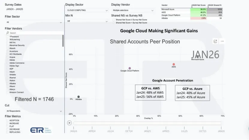 ETR视角:Azure 占据主导,谷歌云平台持续缩小客户渗透差距