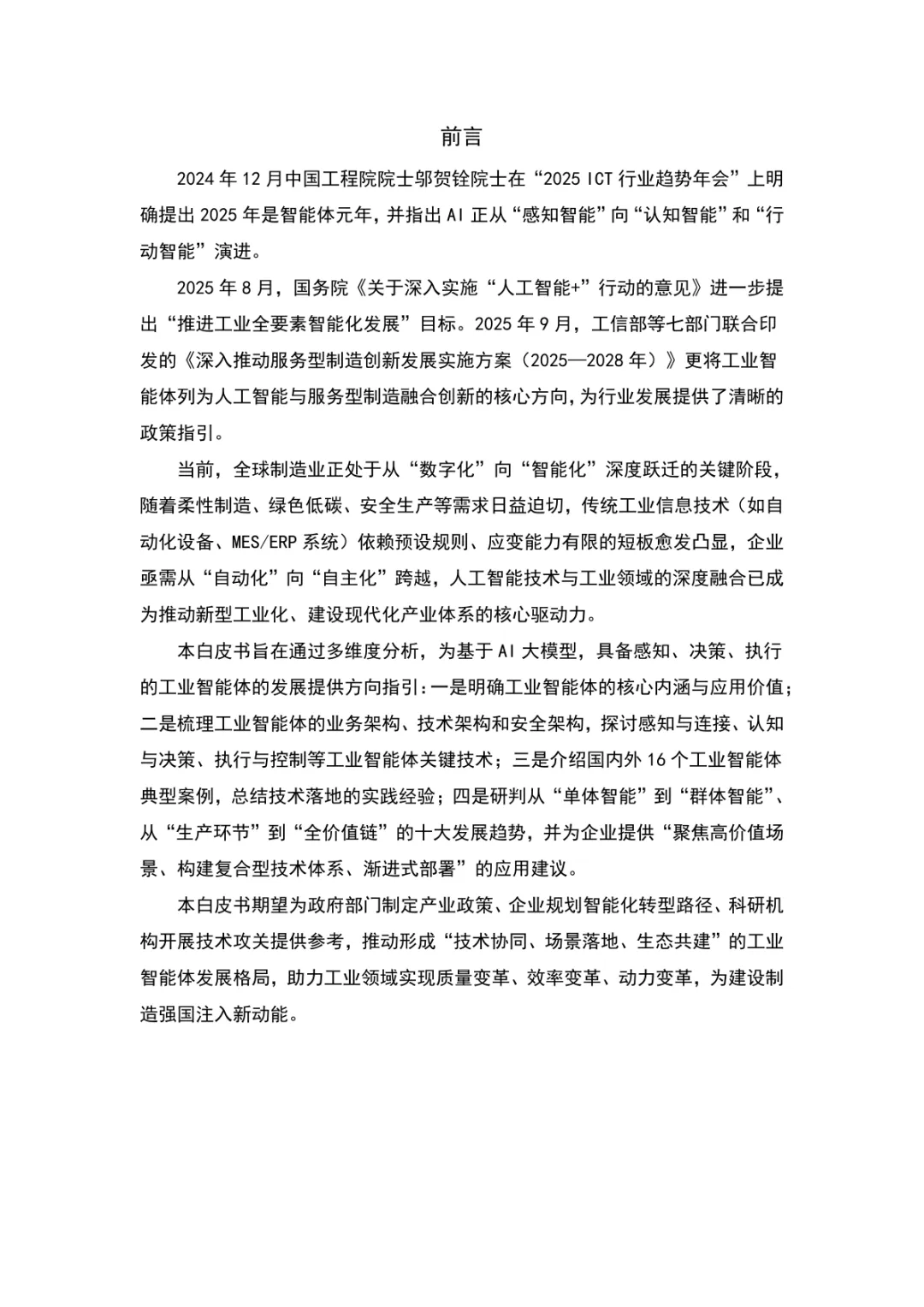 导读:智能体技术正加速渗透工业与消费两大核心领域,推动终端设备从被动工具向自主响应的智能主体演进。工业智能体融合大模型、工业大数据与专业知识,通过感知、认知、决策、执行、协同五层架构,实现生产全流程自主优化,在预测性维护、排产优化、节能降碳等场景创造显著价值。消费级智能体则聚焦个人与家庭需求,以端云协同、多模态交互为技术支撑,覆盖可穿戴设备、智能家居、教育办公等多元场景。国内外实践已验证智能体商业价值。工业领域,华为云、西门子等企业的智能体方案实现设备利用率提升、成本降低等成效;消费领域,智能手表的健康管理、扫地机器人的自动化清洁等功能获得用户广泛认可。用户对智能体的核心需求集中在个性化服务与效率提升,健康类、办公类功能付费意愿突出。未来,智能体将向群体协同、自然语言交互、全价值链渗透等方向发展。产业落地需聚焦高价值场景,构建复合型技术体系,平衡成本、体验与隐私安全,推动智能体从辅助工具升级为核心资产。