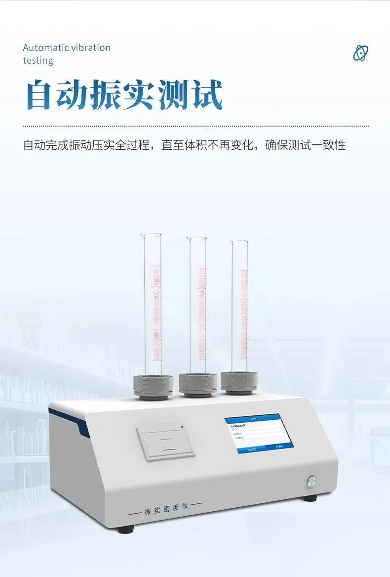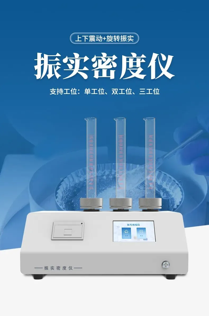 振实密度仪(Tap Density Tester)是通过模拟实际工况中的振动条件,精确测定粉末或颗粒材料在振实状态下密度的高精度仪器。其核心功能是评估材料在压实过程中的体积变化,为工业生产、研发和质量控制提供关键数据支持。