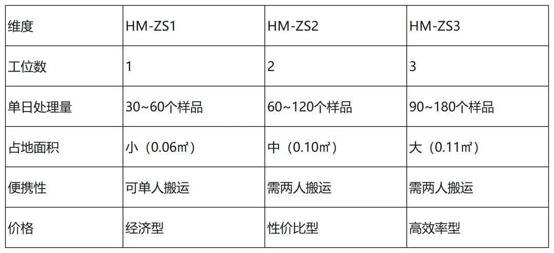 大型工厂/连续生产车间:每日样品量超过80个,推荐HM-ZS3。三工位可实现流水化作业,支持一个批次三个重复或三个不同样品同时测定,最大限度缩短检测等待时间。