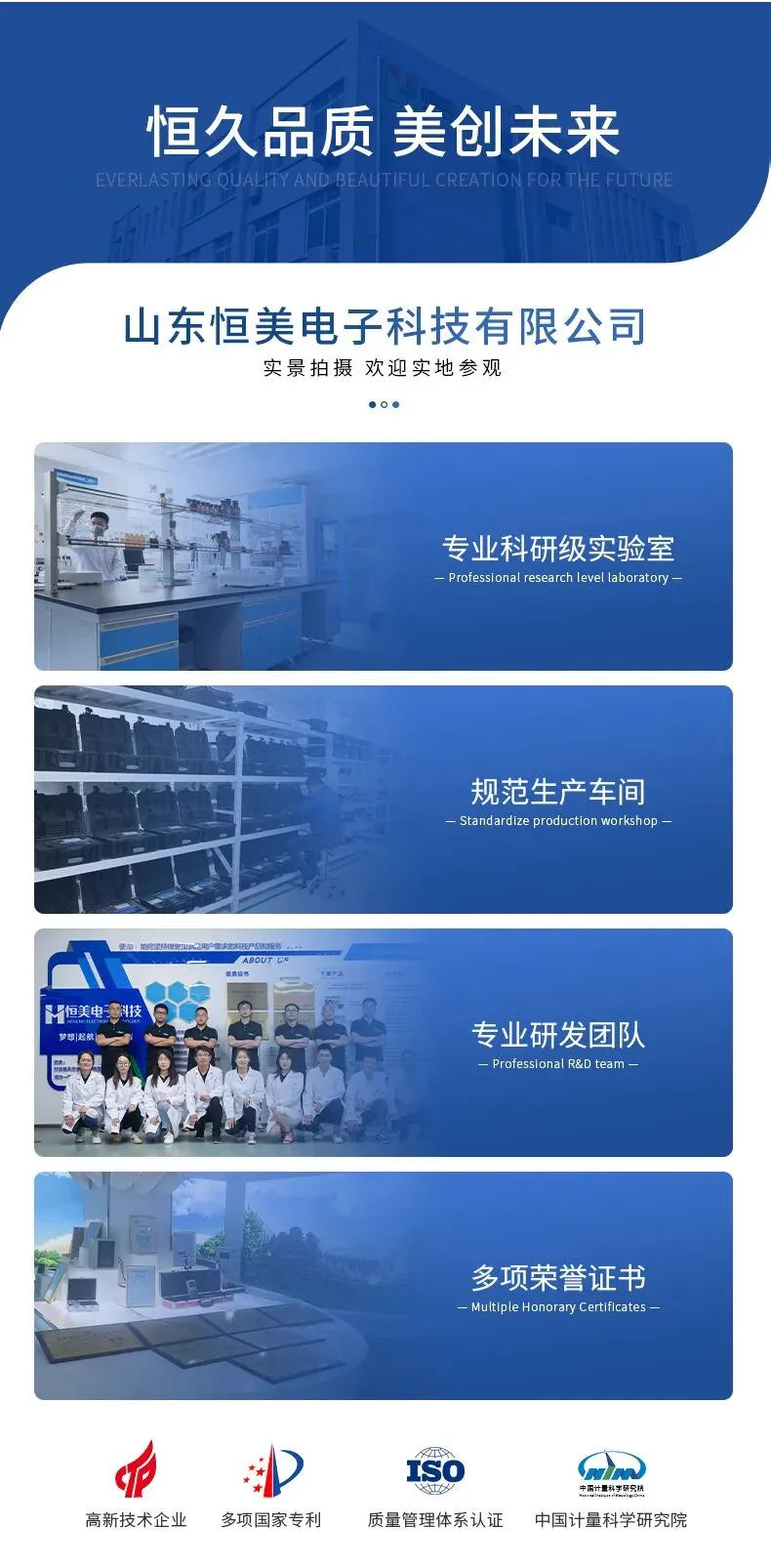 山东恒美智造仪器有限公司是一家专注于物理性能检测仪器研发与生产的科技型企业,近年来先后获得多项省级荣誉: