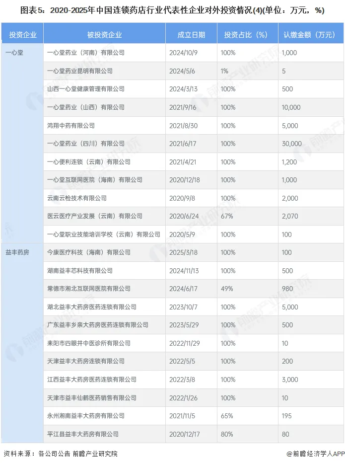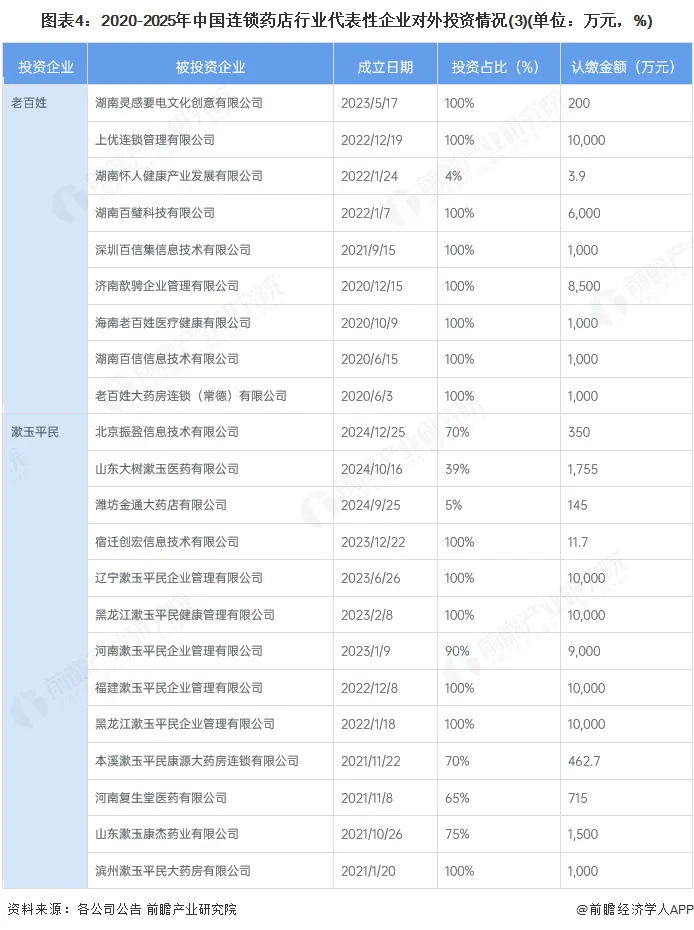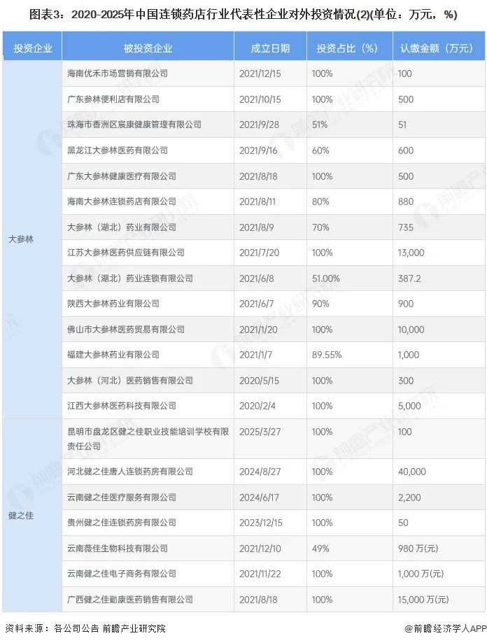 2、大参林、益丰药房、老百姓对外投资较多