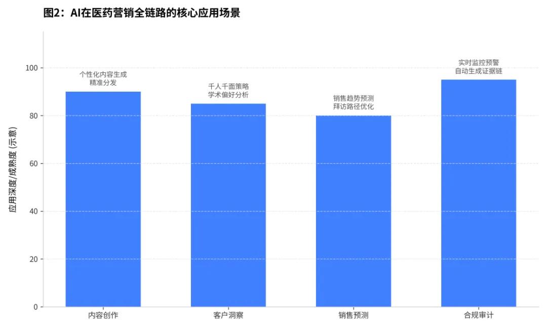 • 销售预测与优化:AI模型预测药品销售趋势,优化销售代表拜访路径和内容,提升销售转化率。
