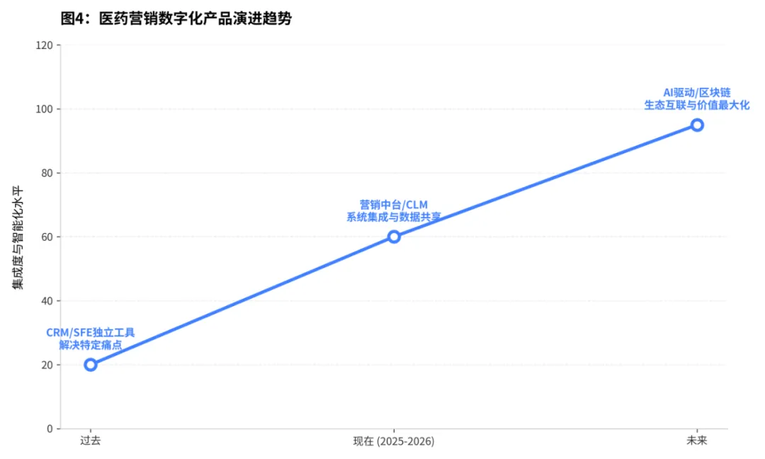 医药营销数字化产品的功能演进,体现了行业从单一工具使用到系统化平台建设,再到生态互联的趋势: