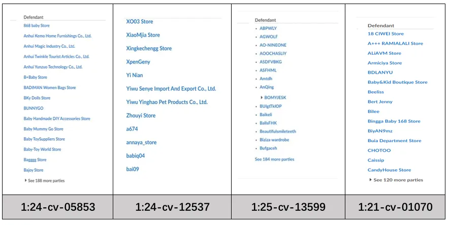 2.被告主要为在跨境电商平台开设店铺的中国企业或个人