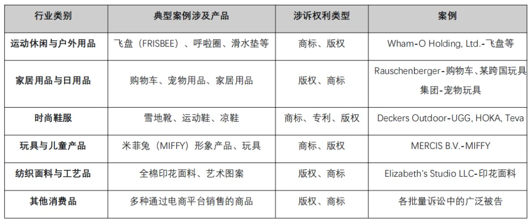 值得高度警惕的是,当前中国跨境电商企业面临的海外知识产权诉讼已呈现从偶发对抗向系统治理的深层演进。以Wham-O Holding, Ltd.(“FRISBEE”品牌方)和Deckers Outdoor Corporation(“UGG”“HOKA”品牌方)为代表的典型头部权利人,通过十余年持续且节奏化的批量诉讼,实现从传统的个案诉讼策略转向长期性、系统化的监控治理策略的转变。更为重要的是,这些主体已经熟练运用商标、版权、专利等知识产权的组合拳,并利用更成熟的诉讼数据库与程序工具,构建起立体化的精准打击网络。