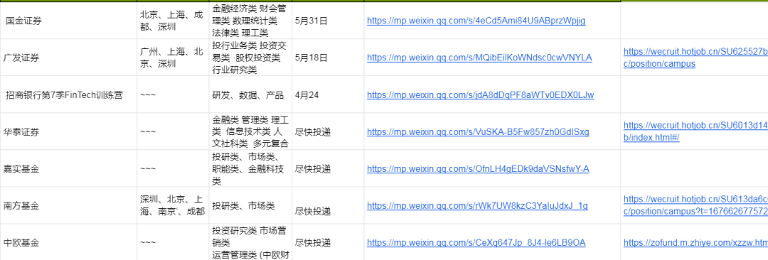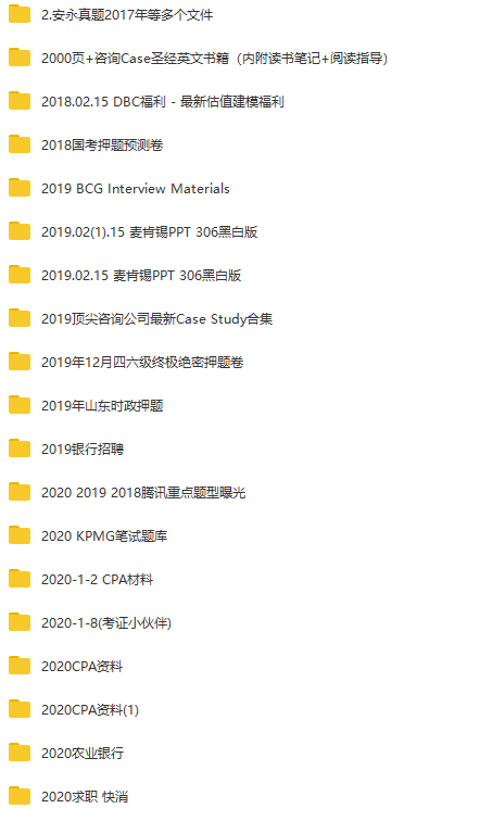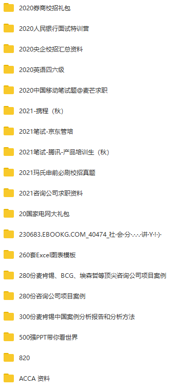 行业: 国企央企、事业单位、公考、军队文职、教招、券商、事务所、银行、互联网、快消、咨询、四大、地产公司、等等 公司: 国家电网、中国烟草、南方电网、国家能源、中国人民银行、银保监会、证监会、国家开发银行、中国农业发展银行、中国进出口银行、中国建筑、邮政集团、国投集团、农商行、中国银行、工商银行、建设银行、邮储银行、交通银行、农业银行、江苏银行、民生银行、招商银行、三大运营商、腾讯、华为、字节跳动、宝洁等等 其他:简历大礼包、北京/上海落户名单、落户资料汇总、就业供需、各行业薪资表......