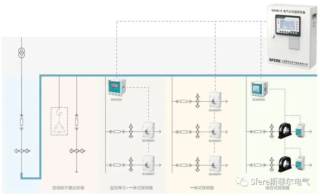 SCK600电气火灾监控系统采用设备层、通讯层、管理层三层分布式设计,实现散控制、集中管理。
