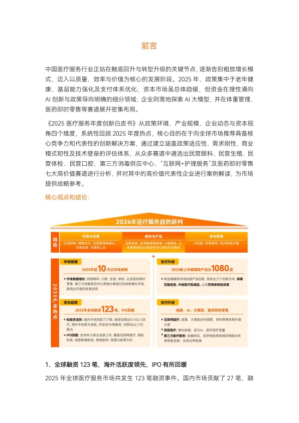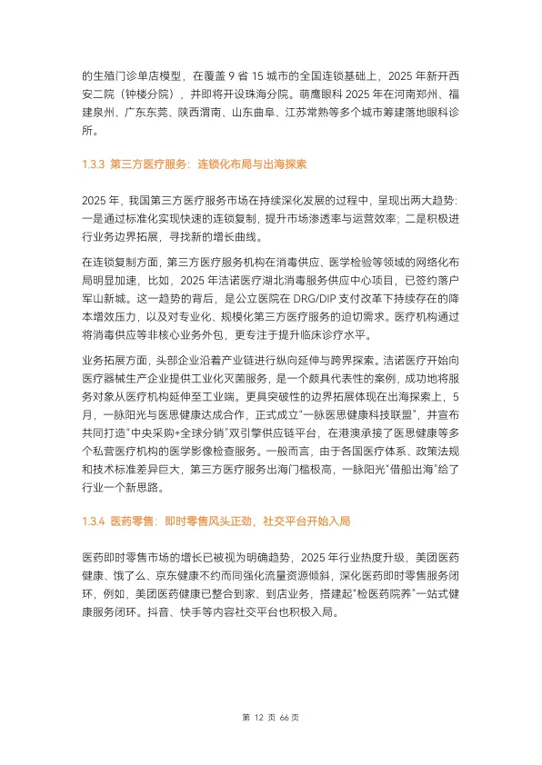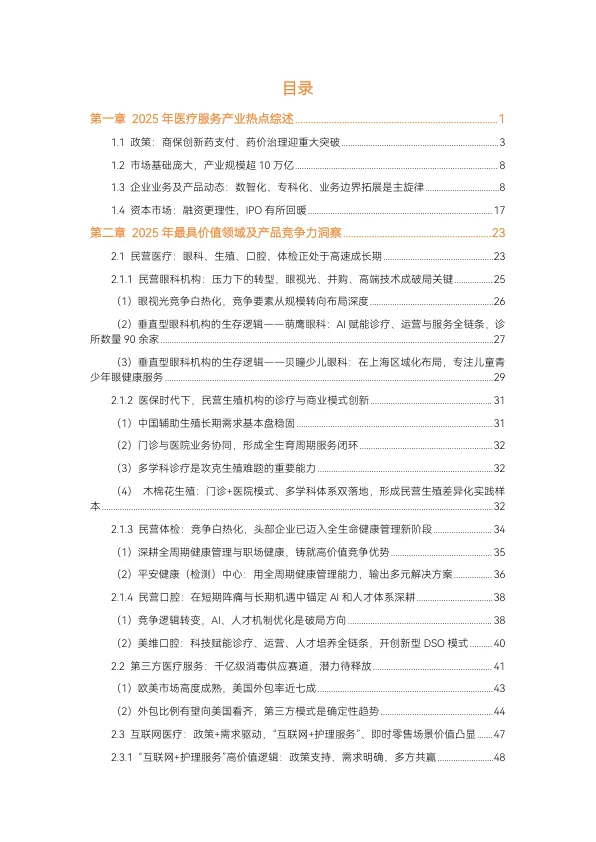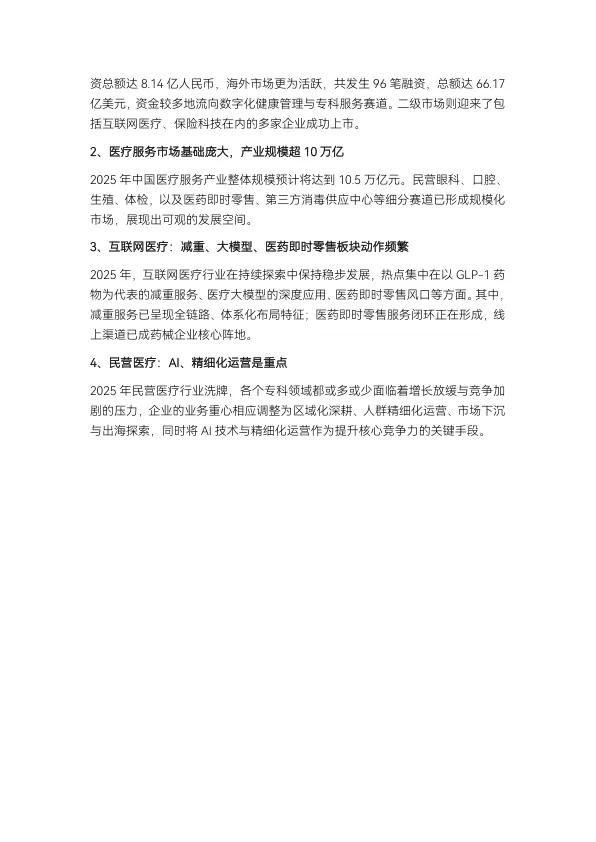 - 专科服务更细致细分: 体重管理、长寿医学等高度专科化赛道快速崛起。