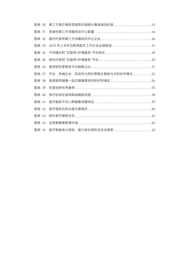 - 体检: 头部企业迈入全生命周期健康管理新阶段,从“查病”向“防病”和“管病”延伸(如平安健康检测中心)。
