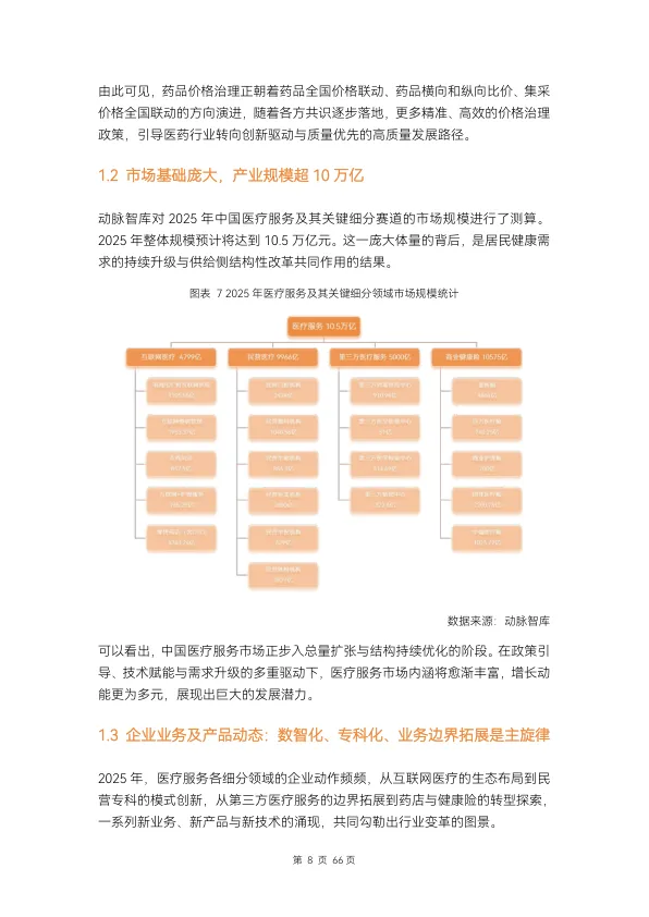 - 市场基础庞大: 2025年中国医疗服务产业整体规模预计达10.5万亿元。