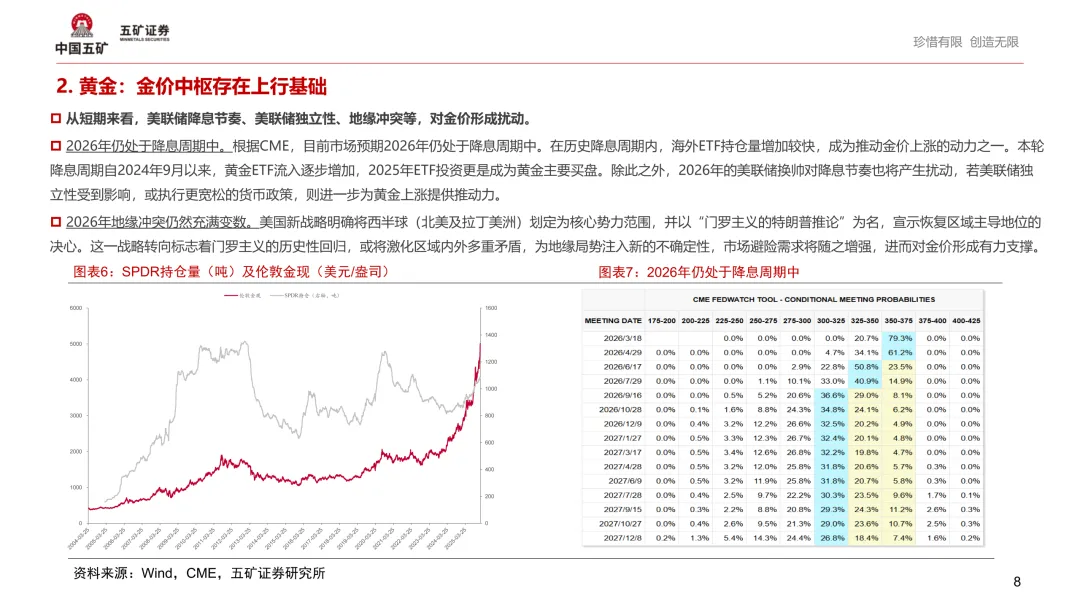 具体品种来看,2025年钨价涨幅领先达到343%,COMEX黄金白银分别上涨81%、178%;铜、锡上涨51%、67%,氧化镨钕涨幅达到97%,氧化镝跌幅较大。