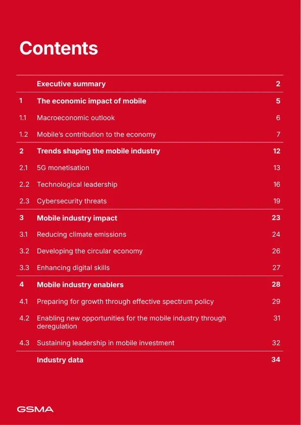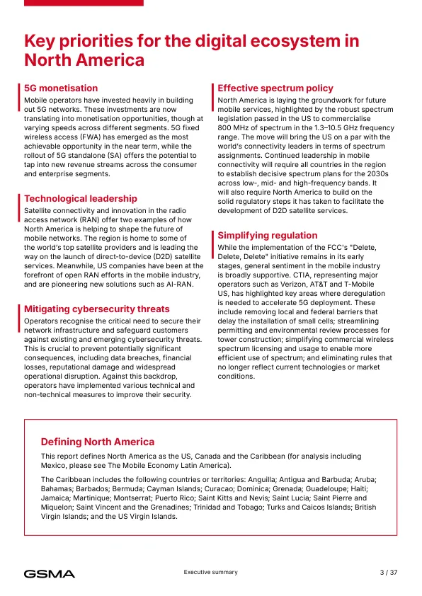 - 对政府:必须持续保障充足的频谱供应,简化基建部署法规,并支持网络安全合作。