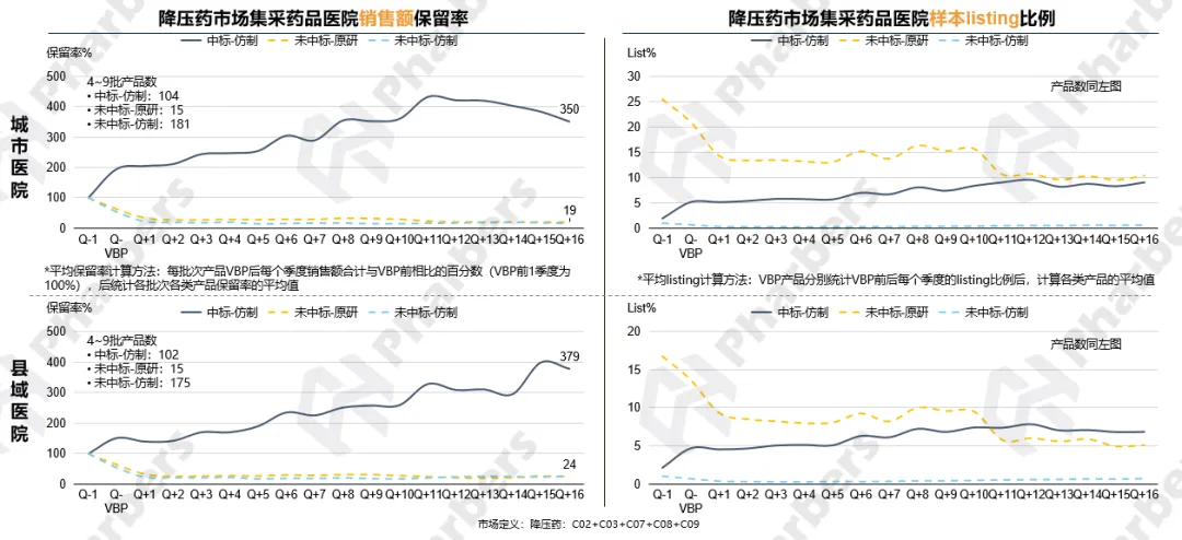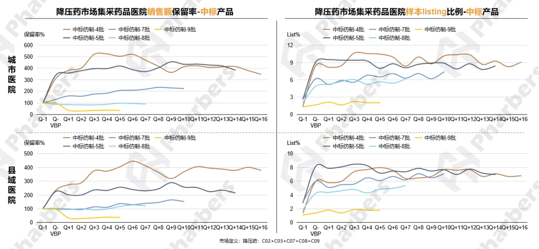 图6-降压药市场各批次集采药品医院销售额保留率&样本listing比例