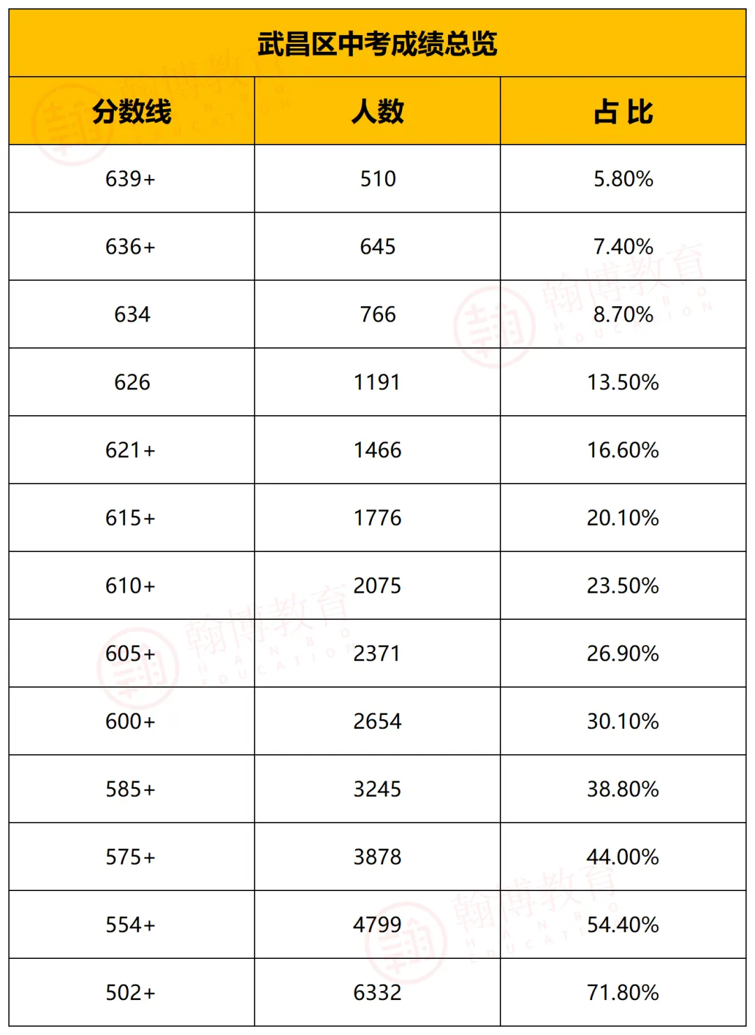 再看家长最关心的高分段表现,更是实力凸显:600分以上考生占比30.1%,而639分以上(冲击顶尖名高的关键分数线)的考生多达510人。不管是想让孩子稳妥升入普高、冲刺市示范,还是目标直指顶尖名校,武昌区浓厚的学习氛围和硬核的教育资源,都能给孩子最扎实的升学保障。